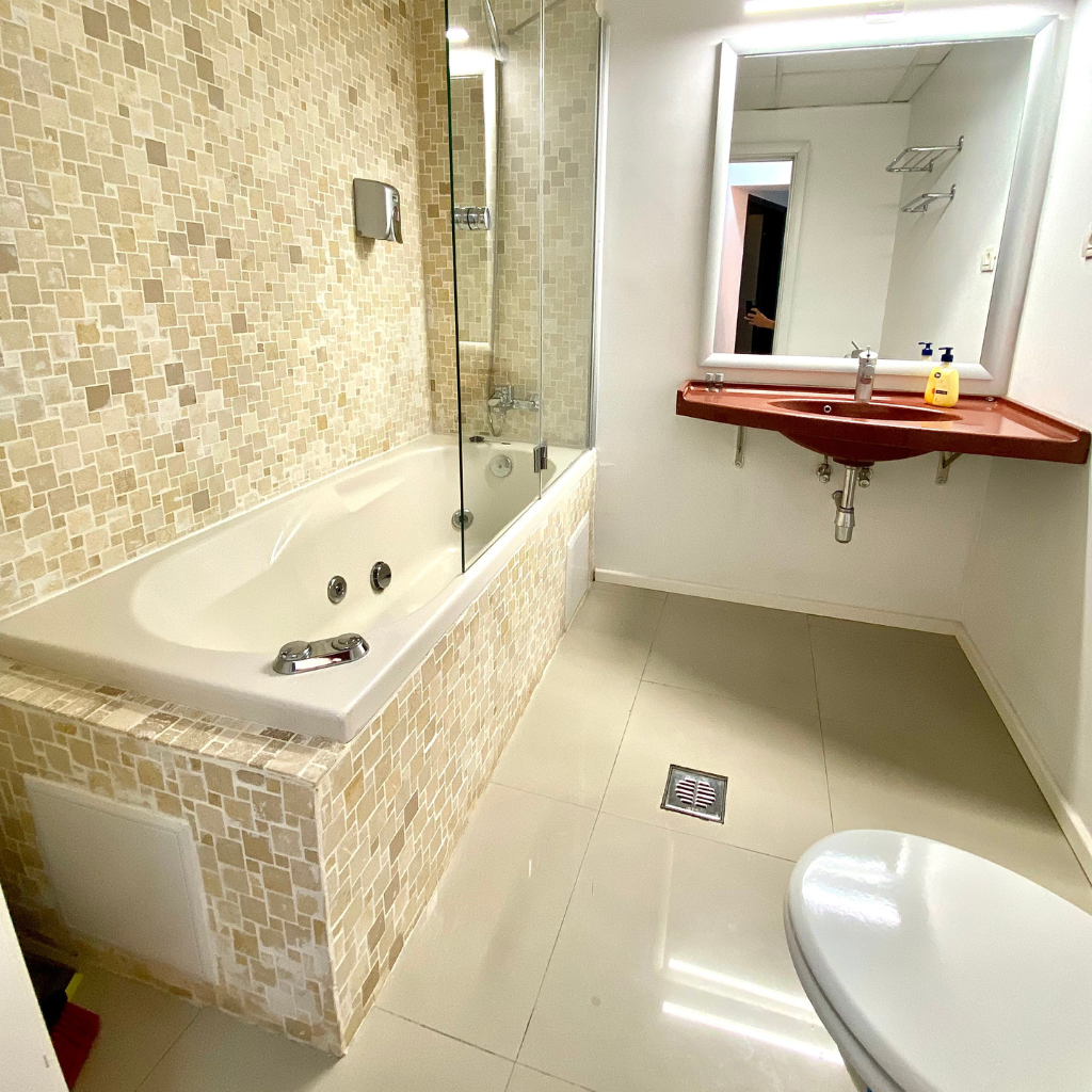 הדירה מרוהטת בטוב טעם עם מיטת קווין סייז (180X200 ס"מ) היכולה להכיל שני אנשים והיא כוללת חדר רחצה פרטי עם אמבט ג'קוזי מפנק.