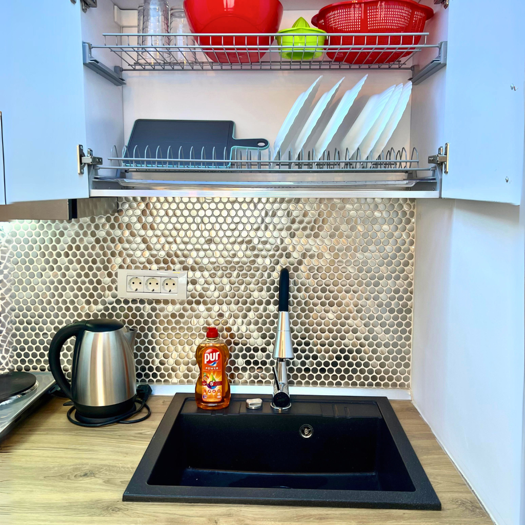 הסטודיו מציע מגוון שירותים, לרבות מטבח מאובזר במלואו עם תנור, כיריים, מכונת כביסה, מקרר, מגהץ, מייבש שיער ומתלה לייבוש בגדים. בנוסף, הוא כולל טלוויזיה חכמה עם שירות אינטרנט חינם.